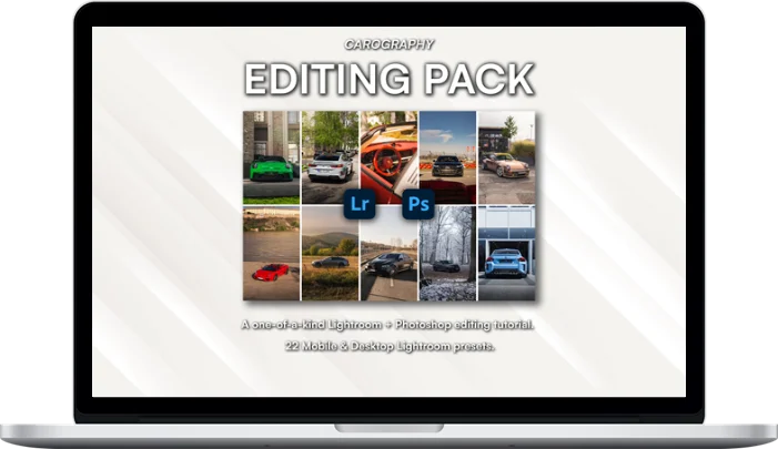 - 40-MIN Editing Tutorial – I will walk you through my entire professional process of editing my car photos covering the basics, color grading, and masking in Lightroom, as well as image cleanup in Photoshop. I will also show you how to import the presets into Lightroom, and teach you how to get the most out of them.
